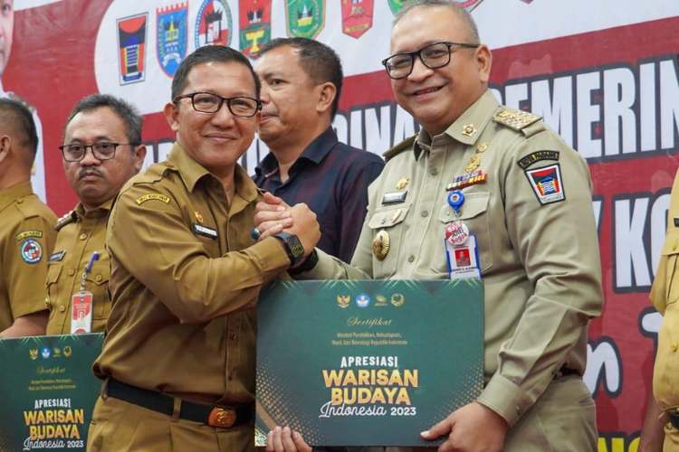 Pj Wali Kota Padang Andree Algamar menerima penghargaan Warisan Budaya Tak Benda (WBTB) untuk tradisi Serak Gulo dari Kemendikbud Ristek, Selasa (5/11/2024).