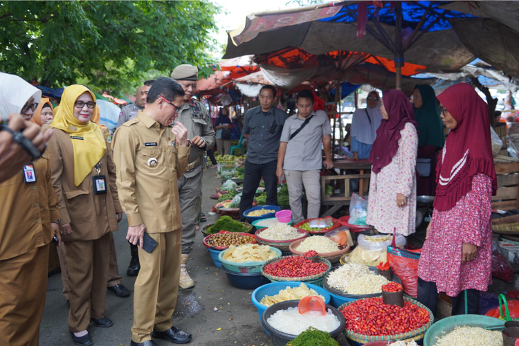 Pjs Wali Kota Cilegon Nana Supiana meninjau stok dan harga bahan pokok di Pasar Kranggot, Cilegon, Banten, Selasa (5/11/2024). (Dok. Pemkot Cilegon)
