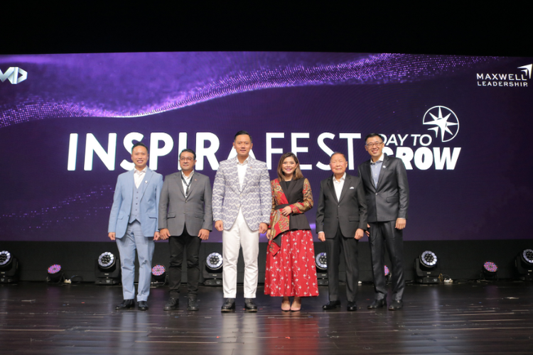 Menko IPK AHY, Merry Riana, David Tjokrorahardjo, David Pratomo, Menteri Ekonomi Kreatif (Menekraf) Teuku Riefky Harsya, dan pendiri Lippo Group Mochtar Riady hadir pada acara InspiraFest Day to Grow, Jakarta, Sabtu (9/11/2024).