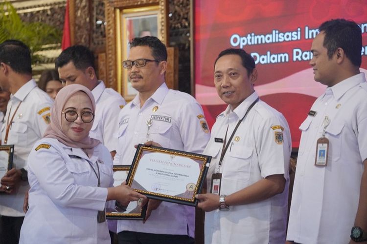 Penyerahan piagam penghargaan untuk Diskominfo Kabupaten Klaten.
