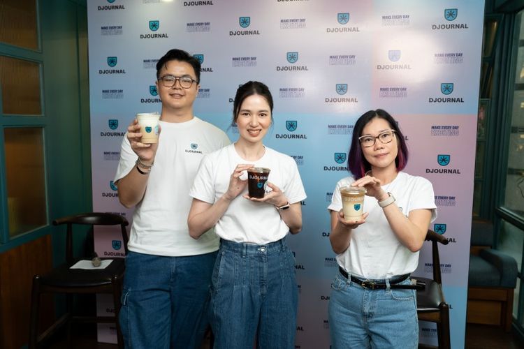 (Kiri) Marketing Manager Djournal Coffee James Hezekiah, (tengah) Chief Excitement Officer Djournal Coffee Laura Basuki, dan (kanan) Presiden Director ISMAYA Group Cendyarani saat peluncuran identitas baru Djournal Coffee di Jakarta, Kamis (21/11/2024). (dok. Djournal Coffee)