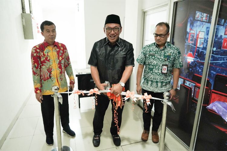 Wali Kota Cilegon Helldy Agustian meresmikan Pusat Pemantauan Keamanan Informasi Pemerintah Kota Cilegon dengan prosesi pemotongan pita di Aula Dinas Komunikasi, Informatika, Statistik, dan Persandian (Diskominfo) Kota Cilegon, Jumat (6/12/2024).(Dok. Pemkot Cilegon)