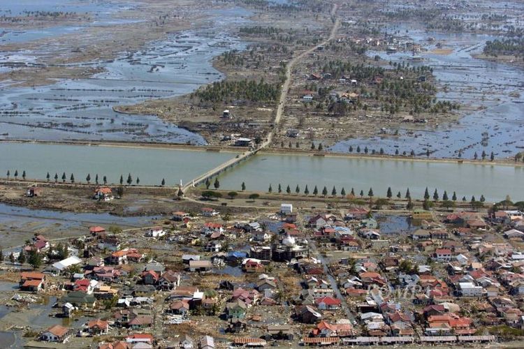 Meskipun akses beberapa ruas jalan protokol sudah dapat dipergunakan, sisa sampah akibat gelombang tsunami di Banda Aceh, pada Kamis (13/1/2005), masih terlihat menumpuk di reruntuhan gedung dan rumah penduduk.