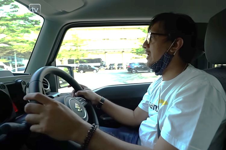 Andre Taulany saat mengendarai Suzuki Jimny 3-pintu.