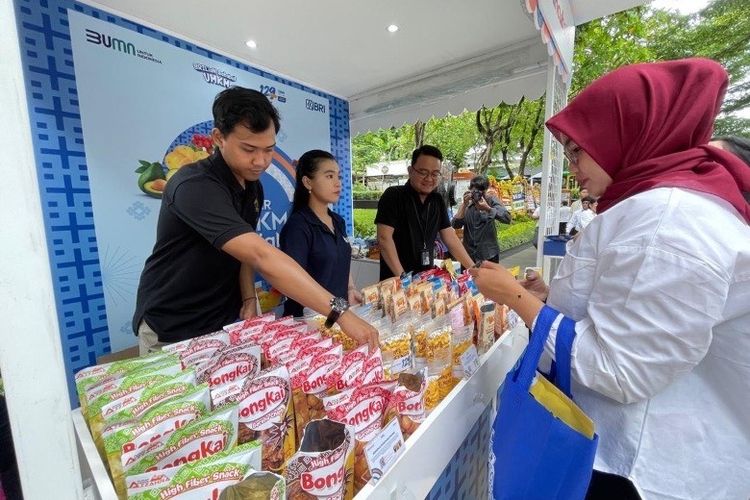 Rumah BUMN BRI Kotamobagu berpartisipasi dalam Bazar UMKM BRIliaN yang digelar di Area Taman BRI, Jakarta, Senin (16/12/2024).