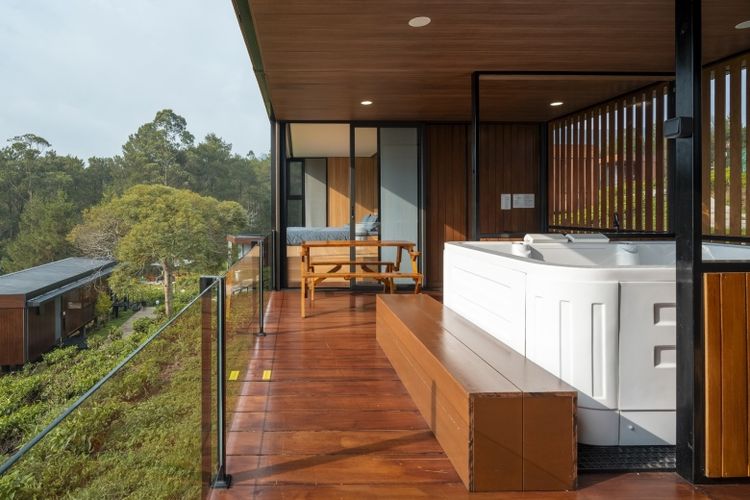 Tampilan interior Cabin 3.0 yang mengadopsi pendekatan minimalis dengan penggunaan material alami, seperti kayu.