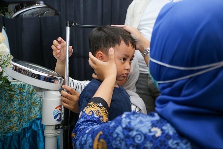 Pengukuran tinggi badan sebagai upaya deteksi stunting.