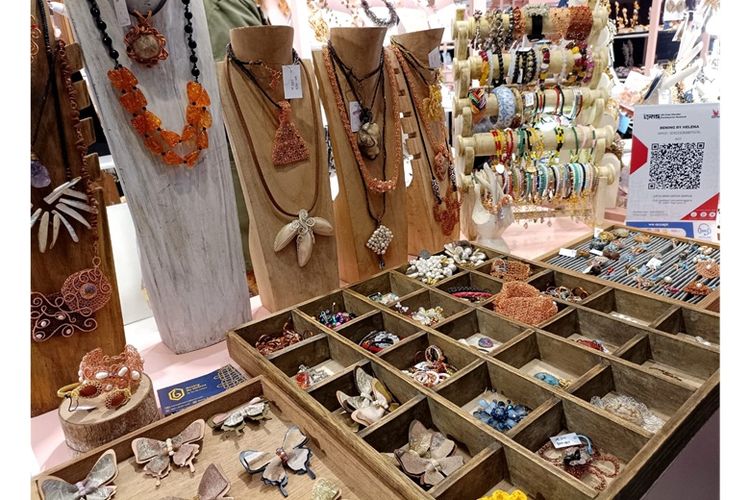 Beberapa produk aksesori buatan tangan dari Bening by Helena pada ajang BRI UMKM EXPO(RT) 2025 di ICE BSD, Banten, Kamis (30/1/2025).