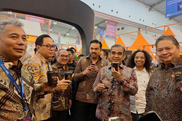 Dirut BRI Sunarso (kiri) bersama sejumlah menteri dan pejabat terkait saat menyambangi area pameran BRI UMKM Expo(RT) 2025.