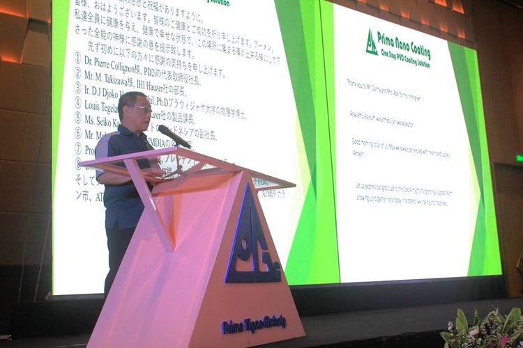 Pendiri PT Prima Tigon Global Group (PTGg) Beny Rustam saat menyampaikan sambutan pada seminar dengan tema Cost Reduction, Quality and Service Solution for All Industries yang digelar pada Jumat (31/1/2025).