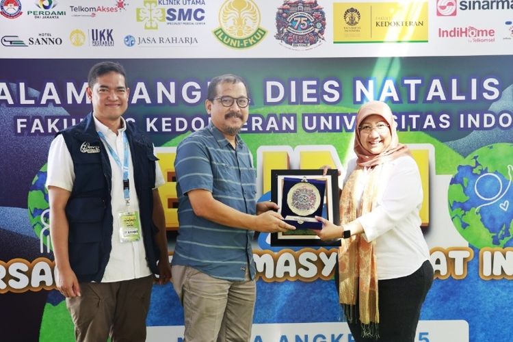 Perwakilan Fakultas Kedokteran Universitas Indonesia menyerahkan piagam kepada Telkom Akses yang diterima oleh General Manager (GM) Telkom Akses Jakarta Utara - Jakarta Barat.