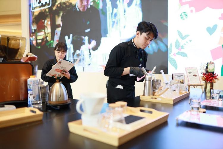 Seorang barista menampilkan keterampilannya dalam meracik kopi menggunakan susu MilkLife di ajang Starbucks Barista Championship 2025 yang digelar di Grand Indonesia, Jakarta. Kompetisi ini menjadi wadah bagi barista berbakat untuk menunjukkan kreativitas dalam menciptakan sajian kopi terbaik (Dok. MilkLife)