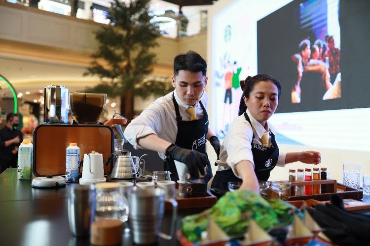 Finalis Starbucks Barista Championship 2025 menunjukkan keterampilan meracik kopi dengan susu MilkLife dalam kompetisi yang digelar di Grand Indonesia, Jakarta. Ajang ini menjadi wadah bagi barista berbakat untuk menampilkan kreativitas dalam menciptakan kopi berkualitas.(Dok. MilkLife)