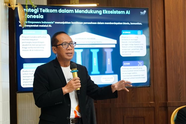 EVP Digital Business & Technology Telkom Komang Budi Aryasa saat memaparkan mengenai strategi Telkom dalam mendukung ekosistem Artificial Intelligence (AI) Indonesia di Jakarta, Rabu (26/2/2025).