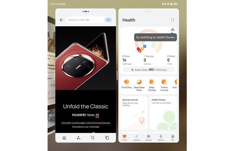 Fitur Live Multi-Task memungkinkan pengguna menjalankan tiga aplikasi sekaligus dalam tampilan layar yang lebih luas.