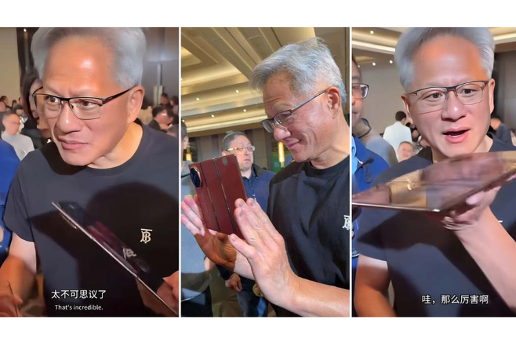 Chief Executive Officer (CEO) dan Founder NVIDIA Jensen Huang mengapresiasi inovasi yang dibawa Mate XT tri-fold.(dok. Huaweicentral.com)