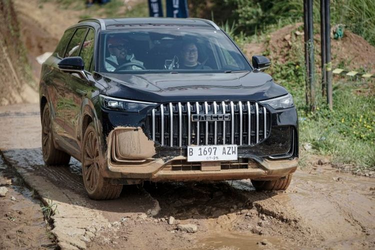 Stabil di medan berat berkat active continuous damping control (CDC Magnetic) suspenssion. Teknologi CDC membaca kondisi jalan secara real-time, mengatur kekakuan suspensi untuk menjaga stabilitas dan kenyamanan maksimal, bahkan saat melintasi bebatuan terjal. (Dok. Jaecoo Indonesia)