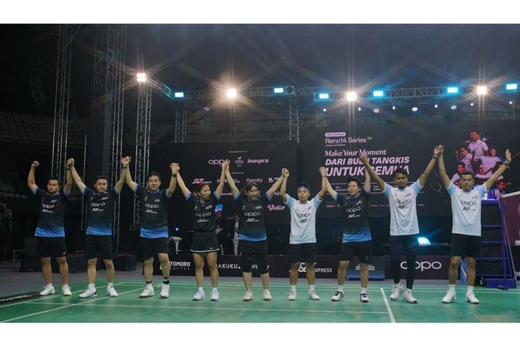 Momen bersejarah sembilan legenda bulu tangkis dalam satu lapangan di Indonesia.(Dok. OPPO)
