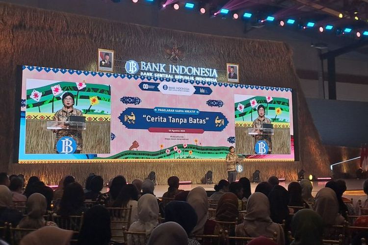 Deputi Gubernur Senior Bank Indonesia, Destry Damayanti, saat seremoni penutupan Karya Kreatif Indonesia (KKI) 2025 yang berlangsung di JICC, Minggu (10/8/2025).(Dok. KOMPAS.com/SRI NOVIYANTI)