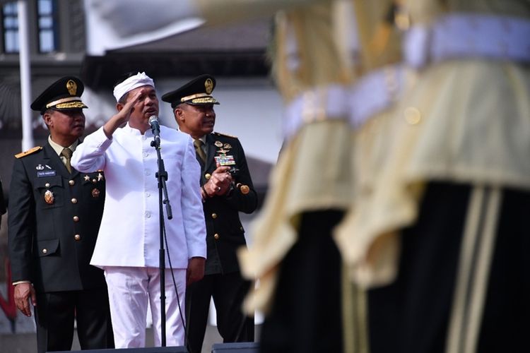 Gubernur Jabar Dedy Mulyadi saat menghadiri pengukuhan pengibar bendera.