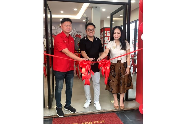 Chief Executive Officer (CEO) sekaligus Founder Chicken Crush Nathanael Malvin Sugito (kiri) saat membuka salah satu gerai Chicken Crush.