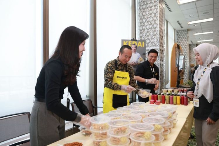 Jajaran Direksi Maybank Indonesia turun langsung melayani karyawan dengan menyajikan berbagai hidangan. Kegiatan ini menjadi simbol apresiasi sekaligus penguatan kebersamaan bahwa setiap insan Maybank memiliki peran penting dalam menghadirkan layanan terbaik bagi nasabah. (Dok. Maybank Indonesia)