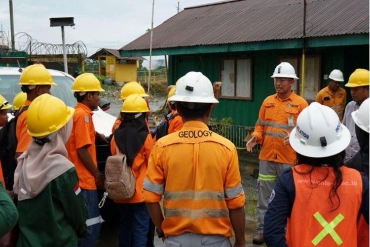 Siswa SMK Negeri 3 Halmahera Utara (Halut) jurusan Geologi Pertambangan ke Tambang Emas Gosowong saat mengunjungi HHM, Rabu (8/10/2025).