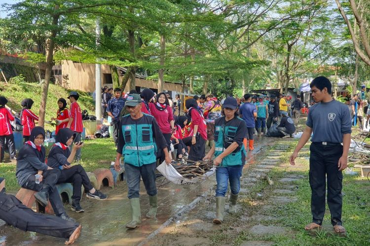 Kegiatan membersihkan sampah yang tergenang di Oxbow Bojongsoang, Kabupaten Bandung, Jumat (31/10/2025).