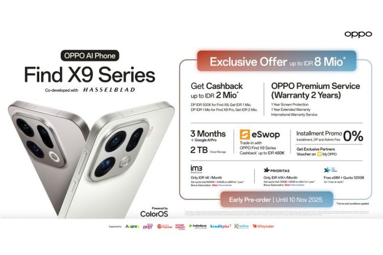 Early Pre-order OPPO Find X9 Series tawarkan keuntungan hingga Rp 8 Juta.(Dok. OPPO Indonesia)