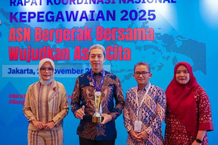 Wali Kota Bogor, Dedie A. Rachi bersama jajajaran Pemkot Bogor menerima penghargaan BKN Award 2025 di Grand Ballroom 1, Hotel Pullman Central Park, Jalan Letjen S. Parman, Jakarta Barat, Rabu (19/11/2025).