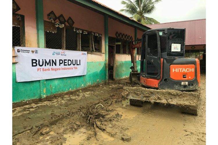 Alat berat dikerahkan BNI melalui program BUMN Peduli untuk membersihkan lumpur sisa banjir di MIN 33 Aceh Utara guna mempercepat pemulihan aktivitas belajar mengajar pascabencana.