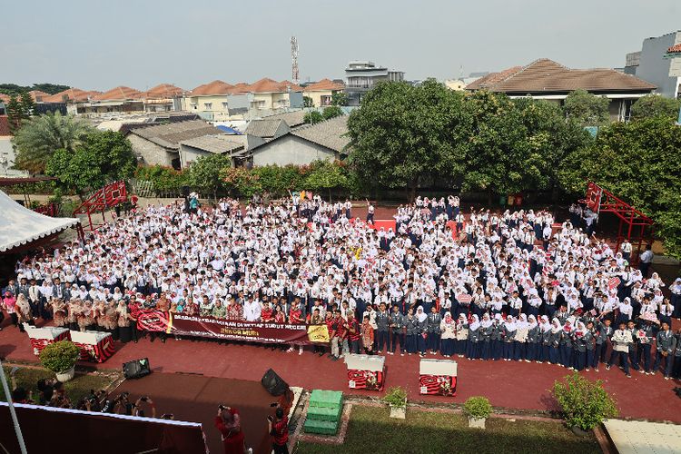 Pelaksanaan program "Berbagi Kebahagiaan di Setiap Sudut Negeri" di Sekolah Menengah Pertama Negeri (SMPN) 256 Jakarta, Kamis (12/2/2026)