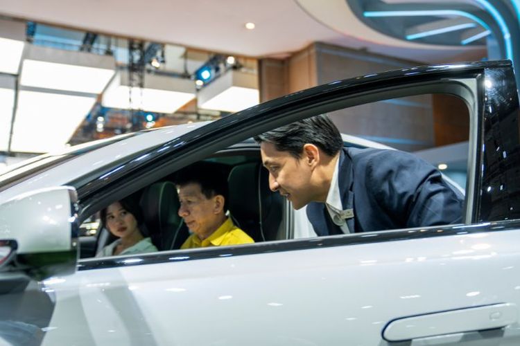Pengunjung menjajal langsung interior mobil listrik BYD di ajang IIMS 2026, Jakarta, Jumat (13/2/2026).(Dok. BYD Motor Indonesia)
