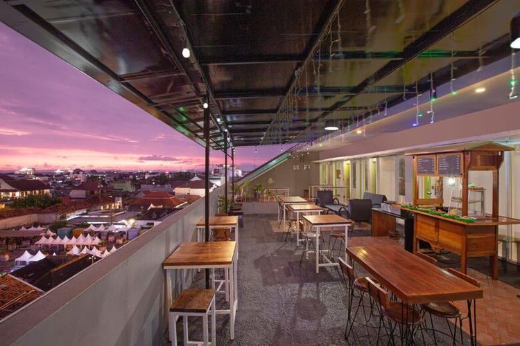 Pemandangan sunset dari Taman Langit Café yang ada di lantai 5 hotel.