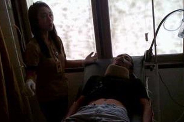 Salahuddin 34 jurnalis TV di Palu dipastikan terkena senapan angin saat meliput bentrok warga, di Kecamatan Marawola, Selasa.