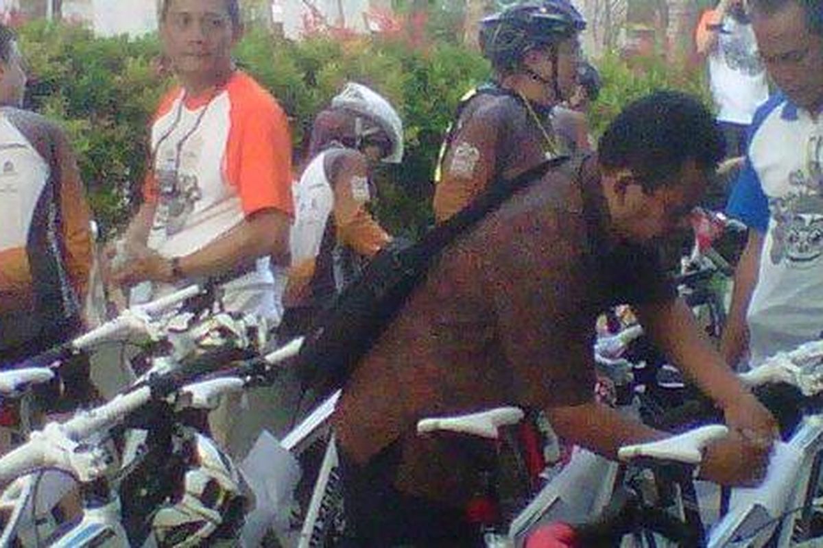 Semenjak subuh, Jumat 14/9/2012, Hotel Santika Siligita sudah ramai oleh para peserta Kompas Bali Bike yang bersiap gowes.