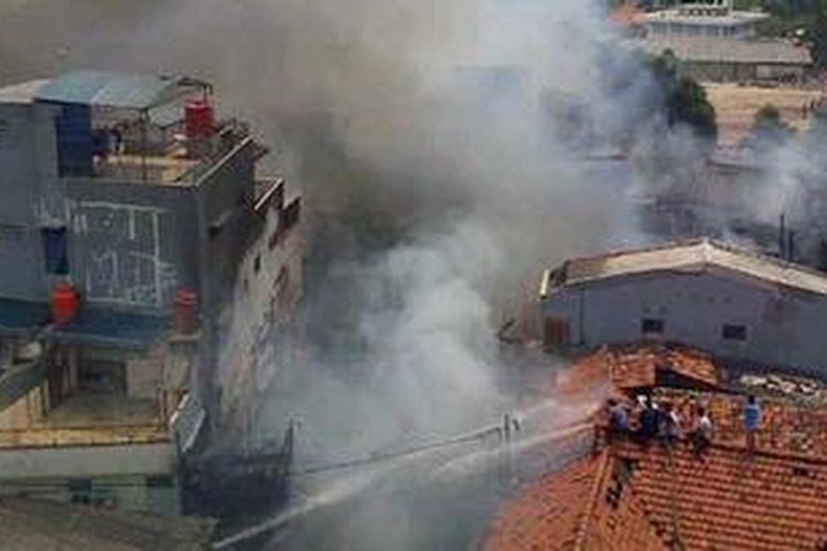 Kebakaran terjadi di Jalan Labu dan Jalan Belimbing RT 04 RW 04, Tamansari, Jakarta Barat dekat Hotel Jayakarta pada Jumat 28/9/2012.