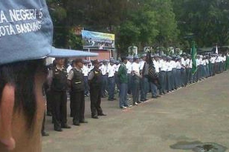 Sebanyak 300 siswa-siswi SMA-SMK di Kota Bandung mengikuti pengukuhan polisi siswa di Mapolrestabes Bandung, Selasa