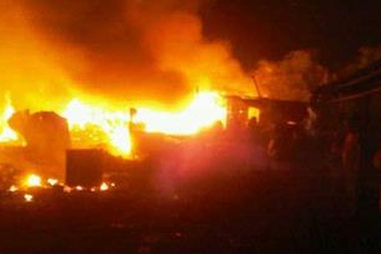 Puluhan kios di Blok J Pasar Guntur, Ciawitali, Kabupaten Garut, terbakar, Minggu 10/3/2013 malam.