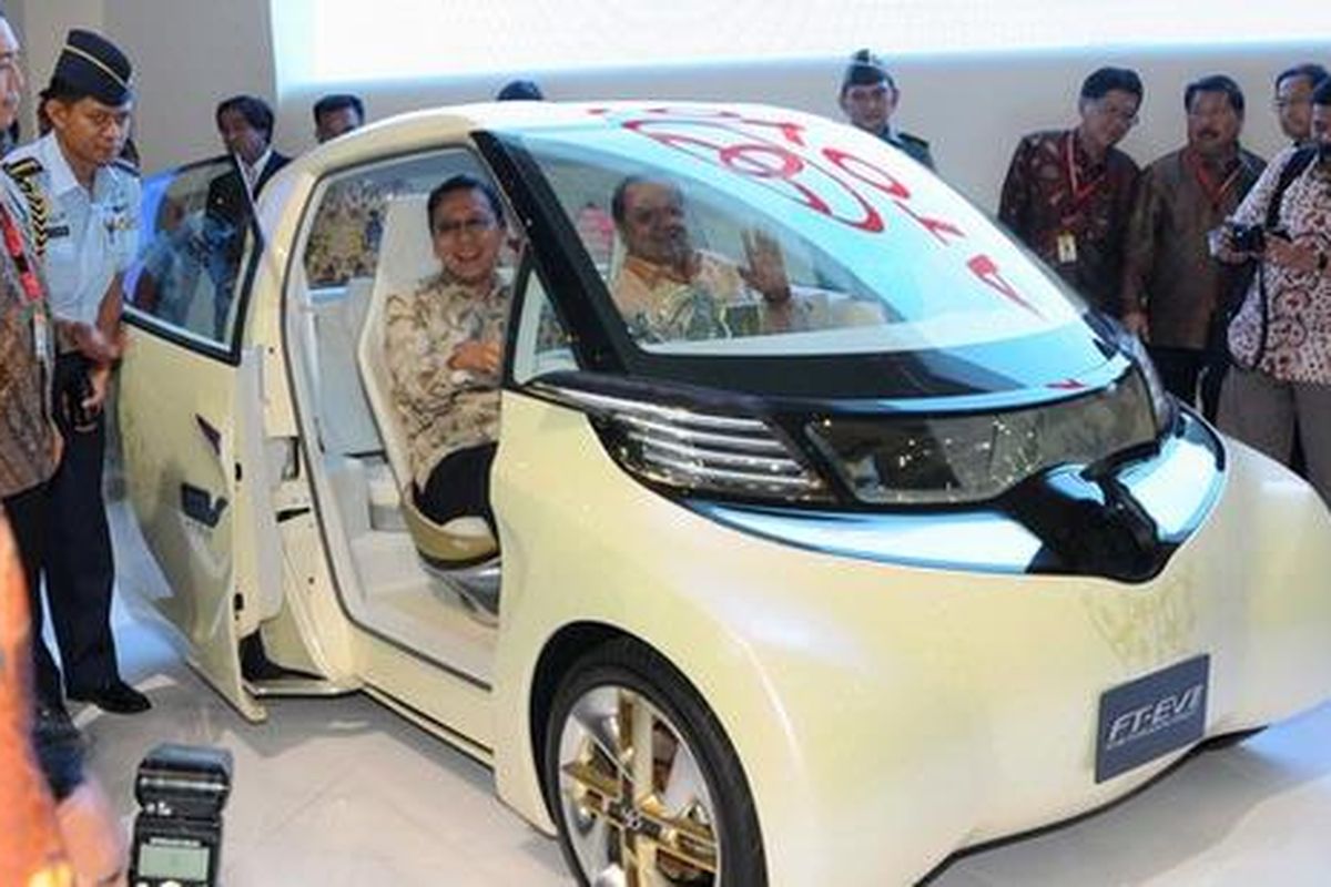 Ketika mengunjungi stan Toyota, mantan menteri keuangan itu memasuki kabin Toyota FT-EV II, kemudian merasakan interior dari Honda CR-Z hybrid dan F-Concept milik Daihatsu.