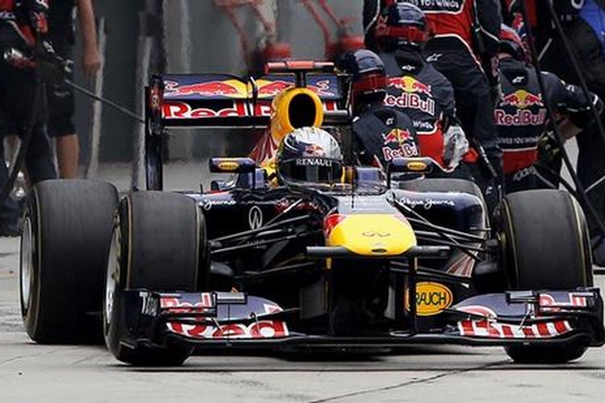 SHANGHAI, KOMPAS.com - Red Bull RB7 kembali menunjukkan superioritas di sirkuit Shanghai, China. Dalam latihan bebas pertama F1 China, Jumat (15/4) duo Red Bull tampil sebagai yang tercepat. Namun yang terdepan direbut oleh Sebastian Vettel.