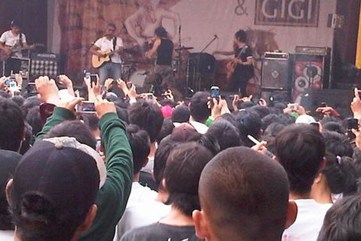 LEUWINANGGUNG, KOMPAS.com - Iwan Fals menggelar konser serial "Tanah" di halaman rumahnya, Leuwinanggung, Bogor, Sabtu (11/6/2011) sore. Dalam konser kali ini Iwan ditemani Gigi. Iwan Fals membuka konsernya dengan lagu "Ujung Aspal Pondok Gede". Penonton yang rata-rata penggemar fanatik Iwan Fals pun langsung riuh bernyanyi bersama-sama.