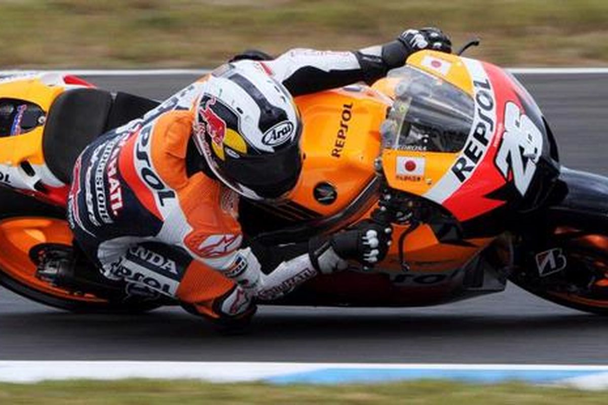 Pada lap keenam, Dovizioso, yang sempat memimpin jalannya lomba setelah Stoner tergelincir, harus merelakan posisinya diambilalih Pedrosa. Pebalap Italia ini harus menjalani penalti akibat jump start. Hal serupa juga dijalani Simoncelli.