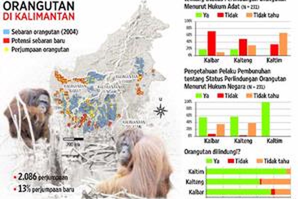 Data kematian orangutan itu merupakan hasil penelitian The Nature Conservancy (TNC) bersama Perhimpunan Pemerhati dan Peneliti Primata Indonesia (Perhappi). Hasil wawancara dari 40 persen desa-desa (687 desa) di dekat hutan habitat orangutan ini, jika dielaborasi dan diolah, hasilnya mencengangkan.