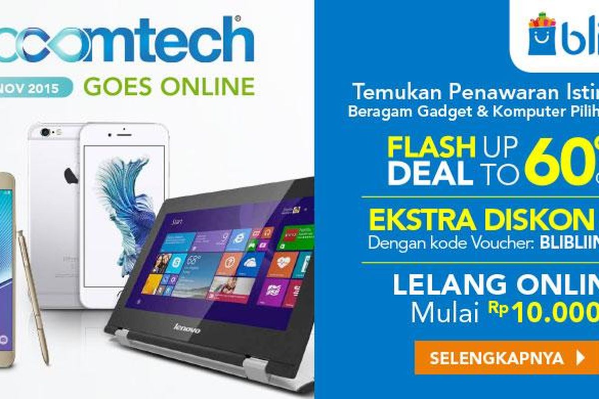 Pameran produk komputer yang terselenggara pada 28 Oktober-1 November 2015 menggandeng mal online Blibli.com sebagai official e-commerce partner. Bibli.com Indocomtech Goes Online 2015 membuat euforia Indocomtech dirasakan hingga ke pelosok tanah air, bukan hanya oleh masyarakat yang mendatangi langsung Jakarta Convention Center (JCC), tempat pameran berlangsung.