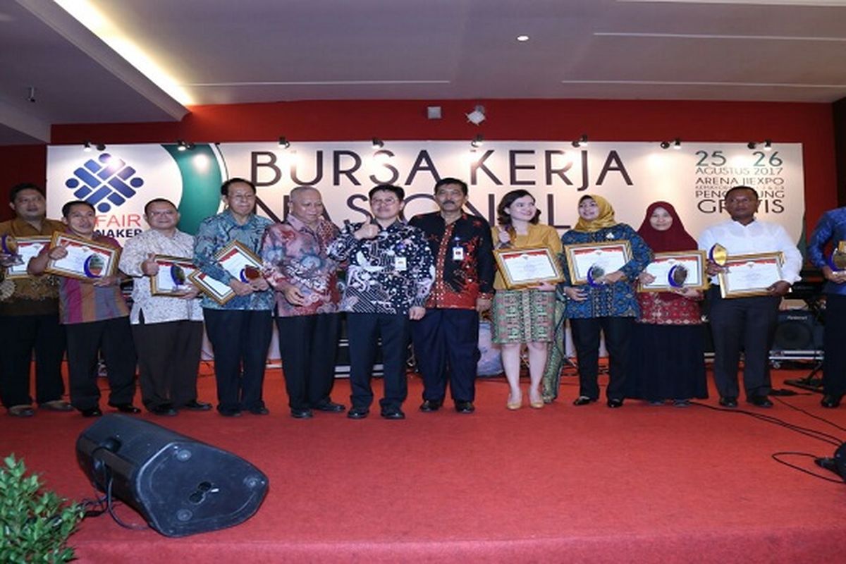 Penghargaan tersebut diberikan pada pembukaan Jobfair Kemnaker di Jakarta Internasional Expo (JIEXPO) Kemayoran pada Jumat (25/8/2017).