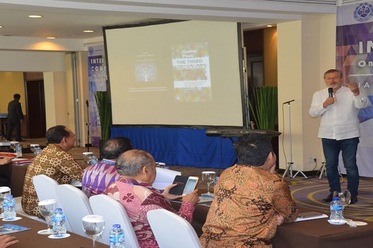 “Apa pun komoditasnya pasti bisa digali teknologi untuk meningkatkan nilai tambah dan kemanfaatannya, intinya adalah inovasi tiada henti. Gerakan ekonomi yang dirintis lebih dari sekedar ramah lingkungan. Saya berusaha menaikkan standar dari kata sustainabilitas lebih tinggi dari sebelumnya, “kata Gunter Pauli