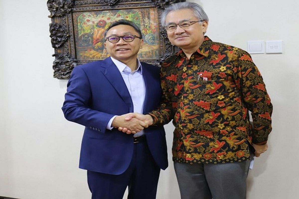 Ketua MPR Zulkifli Hasan menerima kehadiran Duta Besar Jepang untuk Indonesia Yang Mulia Mashafumi Ishii di Ruang Kerja MPR, Kamis (22/2)