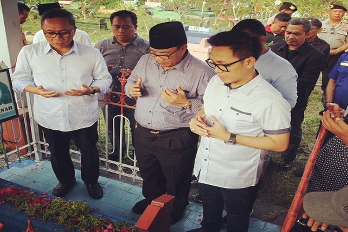 NGANJUK-Ketua MPR Zulkifli Hasan berziarah ke makam aktivis buruh Marsinah di pemakaman desa Sukomoro, Nganjuk Kamis (19/4). Zulkifli Hasan ditemani oleh Pakde dari Marsinah Bapak Suwadi