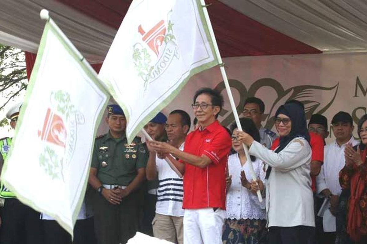 Presiden Direktur Irwan Hidayat berfoto bersama perwakilan dari Direktorat Lalu Lintas Polda Metro Jaya di tengah acara Mudik Gratis Sido Muncul 2018 yang dilaksanakan pada Sabtu (9/6/2018) pagi di Museum Purna Bhakti Pertiwi, Taman Mini Indonesia Indah, Jakarta Timur.“Harapan saya para pemudik bisa selamat sampai tujuan. Bisa merasakan lebaran bersama keluarga. Saya juga berharap tahun depan Sido Muncul bisa melakukan mudik gratis kembali,” kata Irwan.